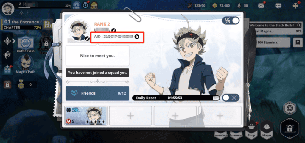 2. Enter your Black Clover M Player ID