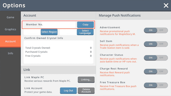 2. Enter your Maplestory M Member Code, Character Name and Server.
