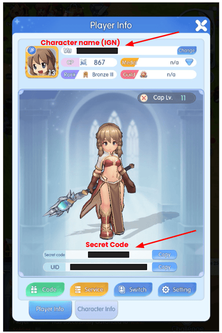 2. Enter your Ragnarok Idle Adventure Secret Code, Server & IGN